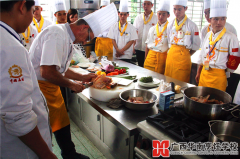 5月4日下午,法国著名大厨Yves BOUVIER(伊夫布韦耶)先生应邀来校,在我校西点教室为我校师生传授了几道经典法菜的做法,伊夫布韦耶先生授课时形象生动,极具幽默感,充分带动现场气氛。获得了师生们的一致好评。 Yve