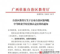 近日,自治区教育厅公布了第四批中等职业学校星级认定结果,我校榜上有名。 据悉,自治区第一轮中等职业学校的星级称号有效期为3年,从发文公布之日开始,至2021年12月31日止。有效期满前,学校可以主动申请存续认定