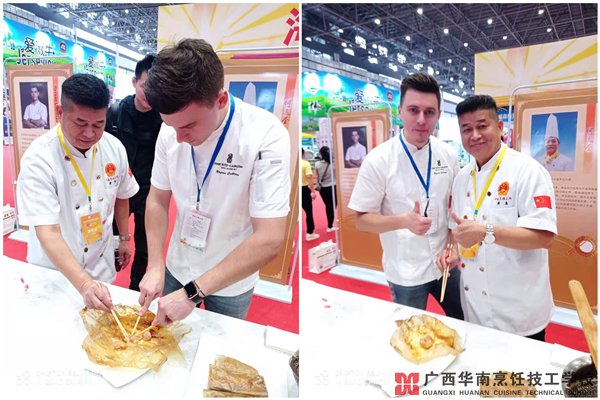 黄盛大师与外籍评委探讨广西本土特色美食-纸包鸡