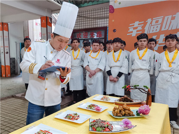 这是我校一年制粤菜大厨专业的阶段考核现场,同学们的考核来到了第二阶段,制作的是酒店和地方特色菜肴,从刀工到火候,再到调味摆盘,无一不展示出他们基本功的扎实程度及专业水准。