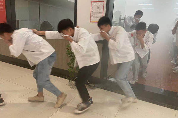 接下来,消防教官组织大家开展模拟消防应急疏散演练。模拟教室、宿舍火情发生后,消防教官立即按照程序启动消防火灾应急预案,下达疏散任务,参训师生在消防员的组织和引导下,5分钟之内全部安全疏散并撤离至指定区域。
