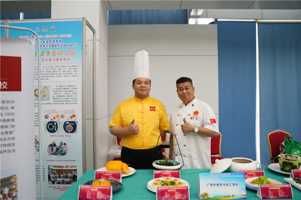 广西2021年全民营养周暨“5·20”中国学生营养日主题宣传活动启动仪式于5月17日上午在广西壮族自治区农业科学院隆重举行。我校作为广西规模最大的烹饪学校,受邀参与此次活动在展示区现场烹制营养餐。