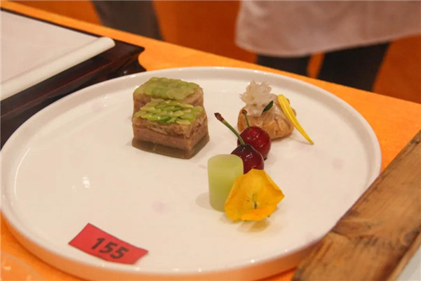 参赛选手们同场竞技,展现出精湛的厨艺,各选手沉着冷静烹饪、装饰、摆盘,一气呵成。一道道独具风味的凉菜在选手们娴熟的技艺中纷纷精彩亮相,展示台上展示出数道品种丰富、造型独特、色香味俱全的美食佳肴,让人流连驻足。