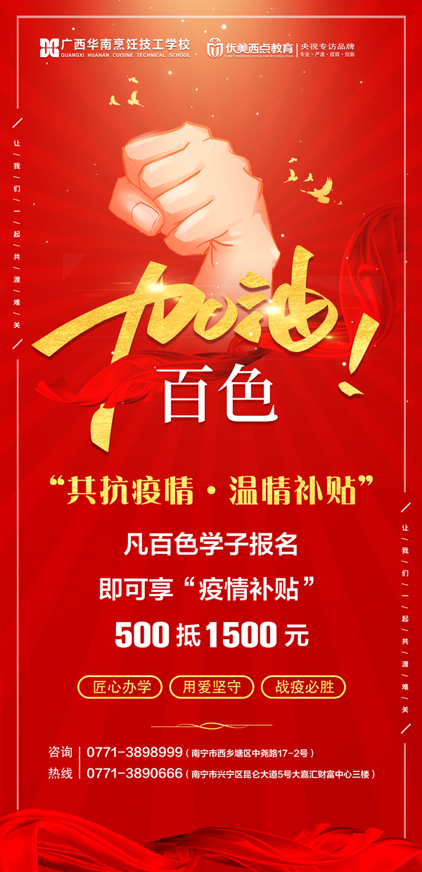 百色地区学生线上预报名,缴纳学费500元,直接抵1500元学费使用。