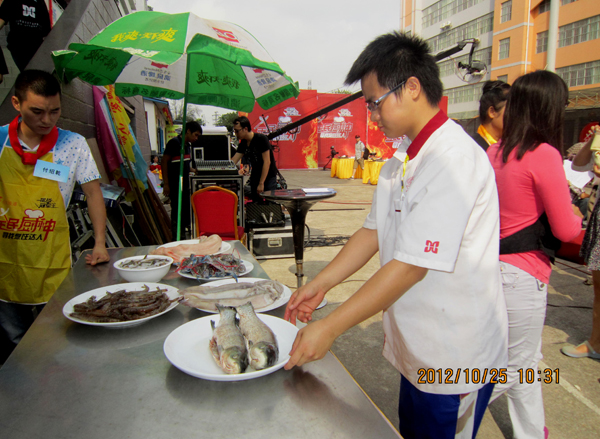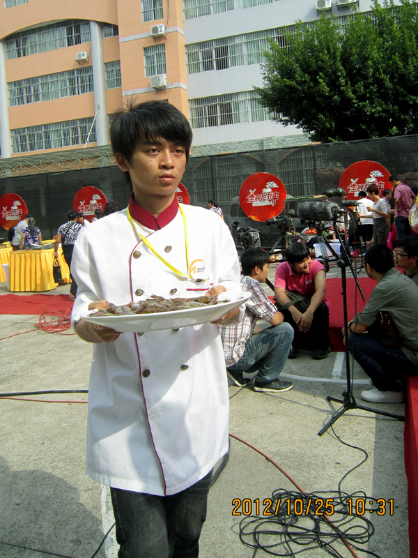 这次参赛的厨师来广西各地,比赛在广西华南烹饪学校校区内举行,担任此次比赛的评委也是来自南宁新东方烹饪学校的专业负责人、就业指导中心主任、广西名厨专业委员会副主任朱伟。面对这次大赛,不管是身经百战的老将,还是年富力强的少壮派,都抖擞精神,全力投入,力争第一。在短短一天的时间里,赛场菜香四溢,赛事紧张、热烈,精美绝伦、富有创意的菜品让观众大饱眼福。