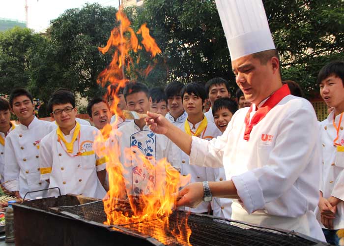 近段,广西华南烹饪学校进行了晚班开班,分别开有烧烤班,糖艺班、雕刻班、烧腊班、拼盘班等。开班仪式上华南老师各自展示了自己的绝活,现场不仅吸引了大量学生的围观,而且也提高了学生和老师之间的互动,对美食有更一步的了解,同时也丰富了学生的学校生活。