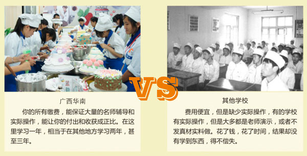 近年来随着国内技能型人才短缺,职业人才越来越受到重视,越来越多的初高中毕业生也乐意选择学一门技术作为自己的起步点。西点专业凭借其起点低、就业好、薪水高、环境佳等优势成为很多90后女生的首选。在选择学校时,越来越多的家长愿意把孩子送到广西华南,学西点,为什么只选广西华南烹饪学校?广西华南到底好在哪里?在这里我们通过实际对比方式,带你了解广西华南烹饪学校。
