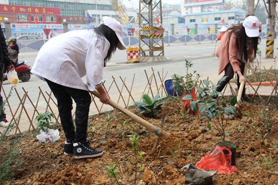 植树活动开始后,同学们干得热火朝天,整个活动充满了笑声。因为这是学校第一次组织同学植树,所以有很多的同学未曾有过植树经验,不少的女同学用锄头挖土显得很吃力。周围的男同学见状想要帮忙,但被女同学一口拒绝了,在长久的坚持下终于克服了这个难关。费了很大的劲才把一棵树种完,顾不上休息就小心地为小树挂上名牌,然后争相和小树合影留念。同学们都表示能为学校增加一片绿,都很高兴,同时也增强了保护校园环境、美丽校园的意识。
