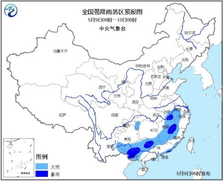 中央气象台今天06时继续发布暴雨蓝色预警,预计今天白天到夜间,贵州东北部和西南部、湖南西北部和东南部、江西大部、安徽南部、江苏西南部、浙江西部、福建西部和东南部、广东北部和东南部、广西大部以及湖北西南部、重庆东南部、云南东南部等地有大雨,广西东北部和中部、湖南南部、广东北部和东南部、江西北部和东部、安徽南部、福建西北部和东南部等地的部分地区有暴雨,上述地区局地并伴有雷雨大风或冰雹等强对流天气。
