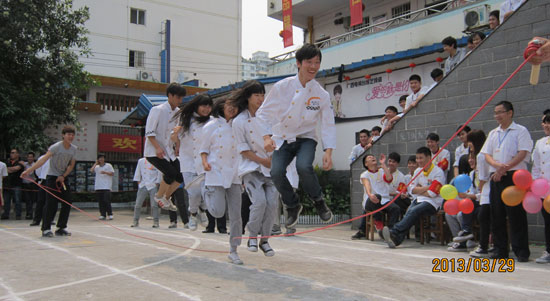 3月29日,广西华南烹饪学校第十九届趣味运动会在大学路校区拉开帷幕。本次趣味运动会以娱乐身心、激扬青春为主题,旨在丰富广西华南烹饪学校同学们的课余生活,给每一位同学一个展现自我的机会。同时也增进同学之间、班级之间的交流,增进同学们之间的友谊,增加团队凝聚力,为美好的校园生活留下一笔灿烂的财富。学校就业办主任朱伟等领导出席了开幕式。本次开幕式由黄银花老师主持。