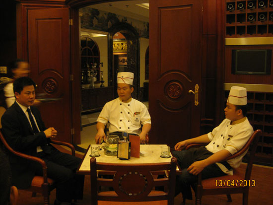 在参观过程中,兰总厨对我校毕业生认真负责的工作态度给与了高度评价,并希望华南烹饪学校在今后的就业工作中给予他们更多人才上的支持。朱主任也代表广西华南烹饪学校对南宁桂景大酒店提供的便利、优质的工作环境表达了诚挚的谢意,并表示学校会尽全力做好毕业学子就业工作,进一步加大人才培养的力度。主厨也给学子们提出了一些相关的就业建议:脚踏实地,从基层做起,不骄不躁,对待工作认真,充满激情,学会自我调整心态。
