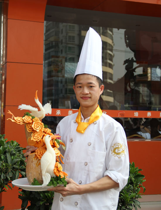 食品雕刻艺术是中国烹饪艺术中的一枝奇葩,随着我国烹饪文化的不断发展,社会上涌现出一大批造诣精深的食雕厨师,同时为追随食雕艺术而来的人也与日俱增。广西华南烹饪学校将继续不断努力,将这门古老的艺术更好地传承。我们相信,在不久的将来,中国食品雕刻技艺将以其独特的风姿在世界的餐桌上大放异彩!