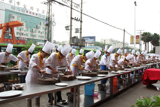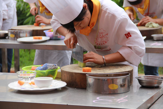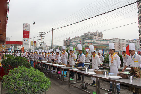 烹饪行业素有“三分炉子,七分墩子”、“无刀不成菜”之说,由此,刀工的重要性不言而喻。4月26日,广西华南烹饪学校联合利华杯学生烹饪技能大赛在校操场隆重举行,全校共有100多名厨师学子报名参加了比赛,赛场上,各位精英厨师学子将亮相绝活,玩转技艺,一展刀工与风采。广西华南烹饪学校建校17年来,在全区乃至全国大大小小的比赛中获得了众多大奖,这与平时学校重视学生基本功训练是分不开的。在广西华南烹饪学校里,每个人都深知:基本功是厨师学好专业技能的灵魂与基础!要是不打好基础,就如同楼房没有打好地基,想要在这个行业立足和发展是不可能的。技能大赛是基本功训练的最好形式。