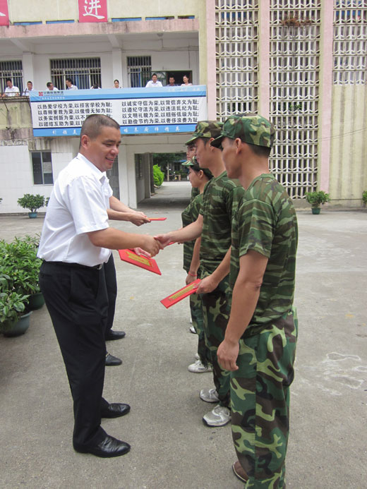 我校负责人魏主任表示,通过军训,同学们学习了人民军队的优良传统和作风,祖国观念、人民观念、国防观念及组织纪律观念得到显著增强,取得了显著成绩,学校为全体参训学生感到骄傲和自豪。他同时强调,军训增强师生之间、同学之间、同学和教官之间彼此认识,建立了深厚的友谊。希望同学们在今后的学习乃至人生历程中继续保持和发扬军训精神,争取取得更大成绩,最后宣布此次表演圆满结束。