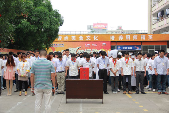 广西华南明秀校区全体师生向雅安地震遇难的同胞默哀