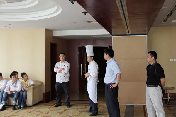 南宁红林大酒店是南宁市最高端、规模最大、配套最完善的五星级酒店之一,该酒店从广西华南烹饪学校建校之初就与之建立起校企合作关系,并在校设立定点委培基地,签订订单式就业协议,为学生提供优越的薪资待遇及广泛的发展空间。虽然酒店环境优越,但学生们还是希望亲自见识一下。沃顿酒店的行政主厨带领学生们对富丽堂皇的酒店和配备完善的后厨进行了一次仔细的观摩。广西华南烹饪学校设有酒店式模拟厨房,学生在平时学习中就可以模拟酒店后厨中的各个岗位,因此当学生们走入沃顿酒店后厨时,对这里的设施设备并不陌生,但酒店厨房的规模还是让学生们为之一惊。一想到这里很可能会是他们以后的工作场所,学生们非常兴奋,纷纷拍照留恋。