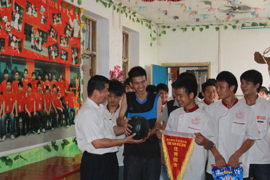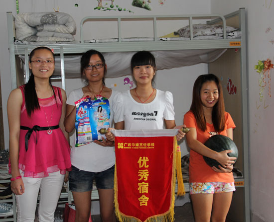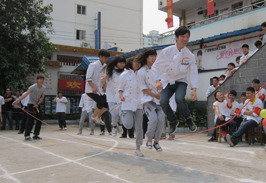 在了解中,广西华南烹饪学校就以此为榜样而为当地许多学校所效仿。为了增进学生之间的感情,促进他们彼此之间的交流,广西华南烹饪学校会定期举办一些校园活动如:新生军训、篮球赛、拔河比赛、宿舍文化大比拼、班级刀工比赛、班级文化布置等,不要认为这些都无关紧要,殊不知这样的活动不仅丰富了他们的校园生活,而且大大地培养了他们的集体荣誉感,为了自己的班级荣誉他们拧成一条绳,群策群力想创意,找办法。拿宿舍文化大比拼来说,为了能让自己的宿舍装扮焕然一新,宿舍的全体舍友们会一起想办法、确定方案,而后分工下去,最后在所有人的配合下完成布置。而往往这个时候,他们装扮好的宿舍里有一大部分都将他们宿舍的合影挂在了最显眼的位置,以展示他们的和睦,在自己亲手布置的小窝里嬉笑打闹快乐的生活。那种温馨的场面也只有场内人更能体会它的深刻意义。