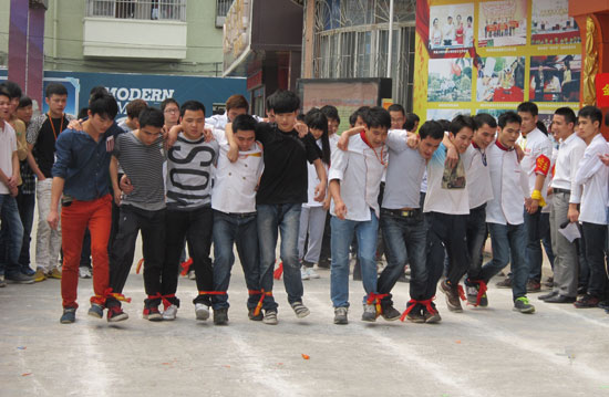 广西华南的学子们课余时间上演“情同手足”趣味比赛