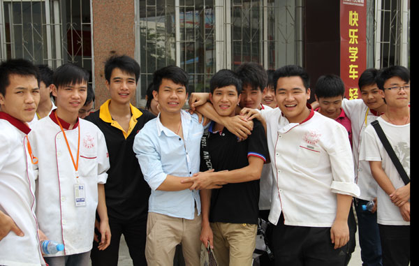 2013年6月4日,广西华南烹饪学校学生黄吉模等9名毕业生学生赴南宁好友缘国宴饭店就业,学校为其举办了隆重的欢送仪式,各专业的学生均齐聚校门广场为毕业生送行。或许这天对广西华南烹饪学校大厨113班的同学来说永生难忘,当鞭炮声想起的那刻,离别的步伐在他们的行列中漫行,舍不得的离愁别绪,忘不掉的师生情谊,却终将无法阻挡因梦想起航的激动心情。