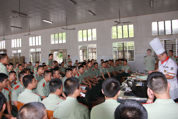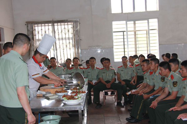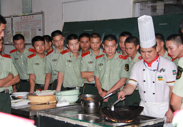 近日,武警广西总队直属支队军需烹饪专业技能培训正式拉开帷幕。广西华南烹饪学校名厨朱伟、黄敬联等大师应邀为武警广西总队各直属支队炊事员进行授艺。