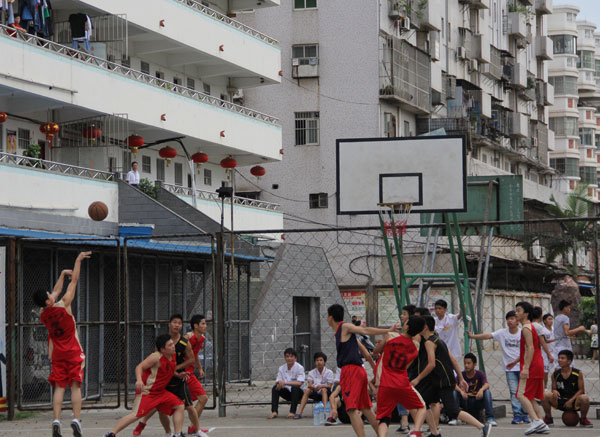 6月6日,广西华南烹饪学校夏季篮球比赛总决赛在校园篮球场进行,经过一系列赛的选拔,比赛双方为金牌1班与金牌4班,本届比赛冠军将在他们之间产生。