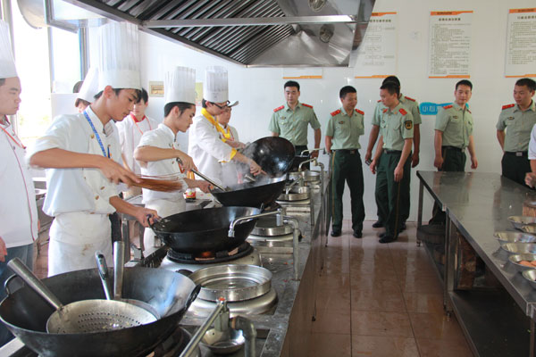 广西华南烹饪学校成立17年来继承和发扬博大精深的中华美食文化,是国家大型的厨师技能人才培训基地。武警广西总队注重培养后勤保障人员的全面素质,在为部队基层后勤建设提供保障的基础上,通过强化炊事员队伍素质建设和整合队伍的技能水平,来保证部队全体官兵的生活质量,促进基层官兵的成长和进步。此次参观交流,定能使得学校与部队达成建立长期的共建关系,同时在提高部队炊事员的烹饪技能和伙食保障能力的基础上,将学校与部队合作推向了新的高度。