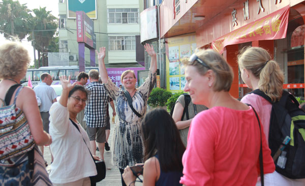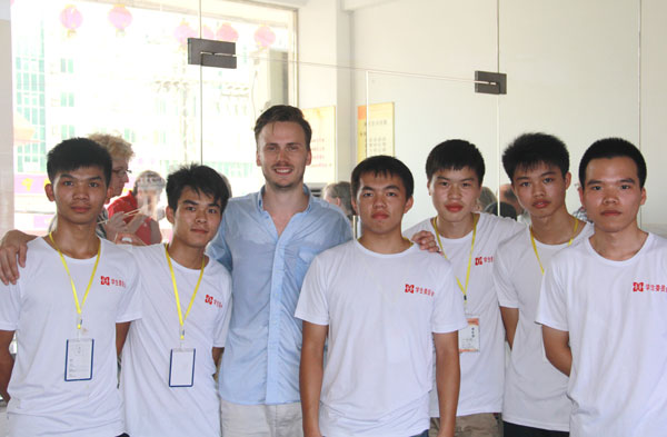 广西华南烹饪学校师生热情欢迎外国友人的到来