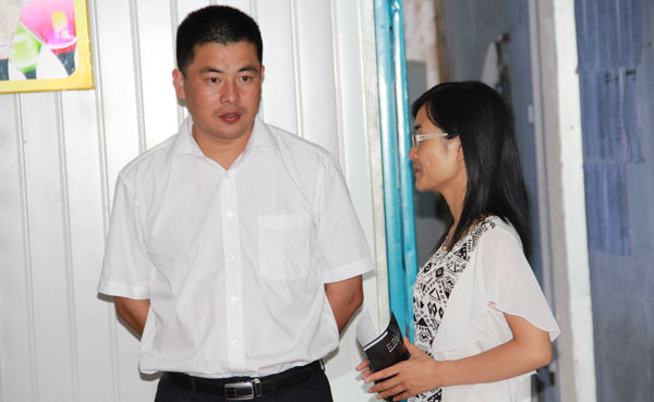 学校就业办主任朱伟和南宁华润万家人事主管深入交谈