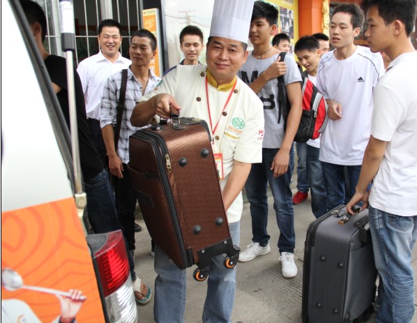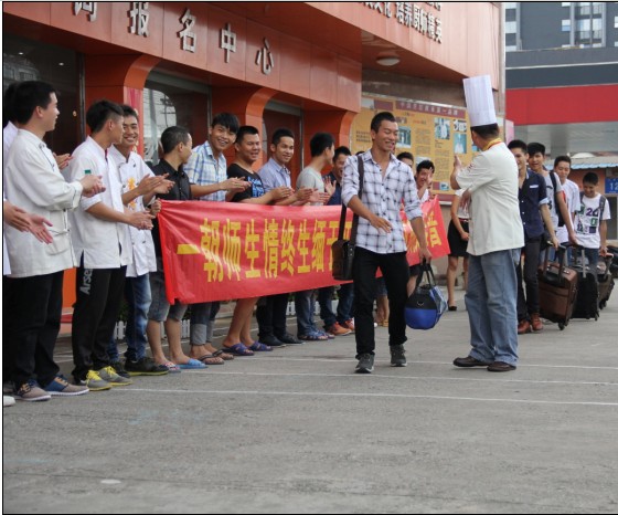 2013年7月23日,广西华南烹饪学校学生罗壹丰等6名毕业生学生赴荔园山庄就业,学校为其举办了隆重的欢送仪式,各专业的学生均齐聚校门广场为毕业生送行。或许这天对广西华南烹饪学校大厨精英114班的同学来说永生难忘,当欢送的掌声响起的那刻,离别的步伐在他们的行列中漫行,舍不得的离愁别绪,忘不掉的师生情谊,却终将无法阻挡因梦想起航的激动心情。