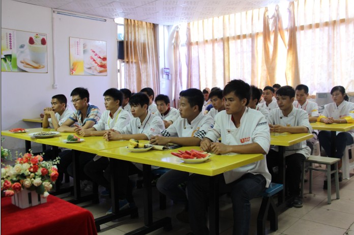 25日下午,在广西华南大学路校区多媒体课室,朱伟和周应斌老师带领的两年制金牌大厨一、二班迎来了他们的毕业典礼。大学路校区就业办主任朱伟等有关领导出席此次毕业典礼。