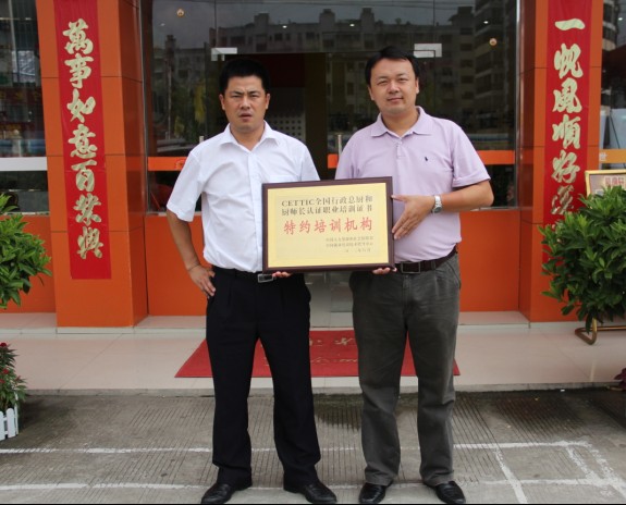 2013年8月1日,上午10点左右,为了更好地推动全国餐饮业的蓬勃发展,进一步加强厨师管理人员队伍建设,提高我国行政总厨、厨师长技能队伍的整体素质,提高就业能力,促进就业。中国就业培训技术指导中心授予广西华南烹饪学校全国行政总厨和厨师长认证职业培训证书特约培训机构牌匾