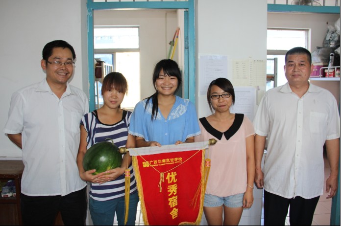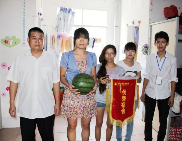 老师给获得优秀宿舍的同学们颁奖