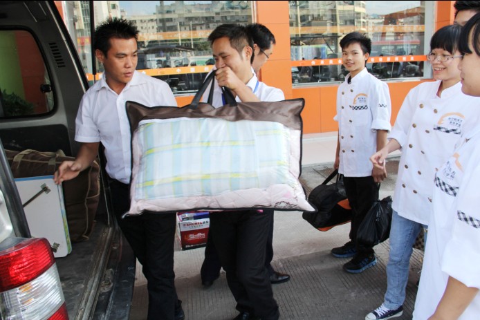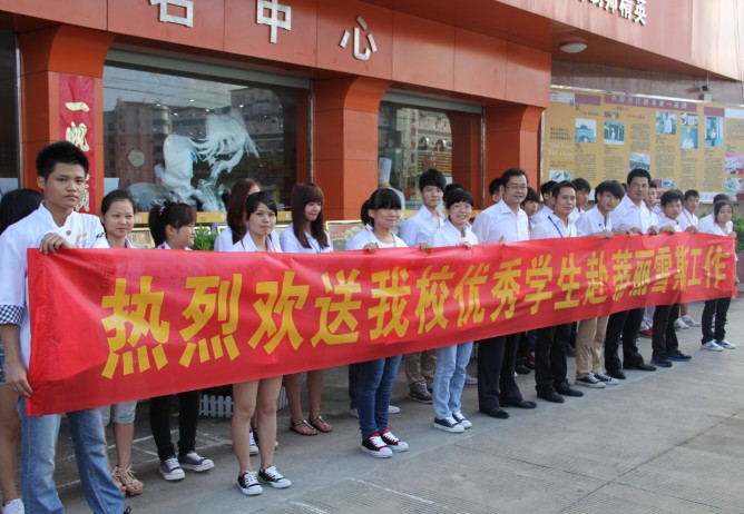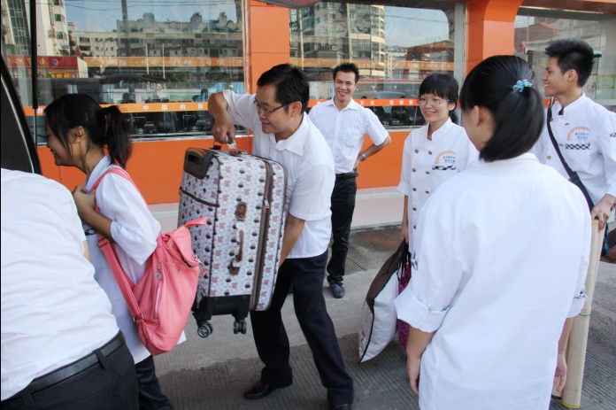 青春,是清晨的朝阳,是初春的绿叶,是含苞欲放的花朵,是雕琢玲珑的脸上灿烂的笑容。新的希望、新的起点、新的梦想、新的征程。2013年8月6日上午,华南学子们早早的就收拾好自己的行李物品,带着他们早已整理好的行囊,怀着无限期待与不舍的心情,等待出发。对于广西华南烹饪学校西点三班优秀毕业生的学生来说,是一个值得纪念的日子,因为这一天,他们即将离开学校奔赴工作岗位踏上新的征程。