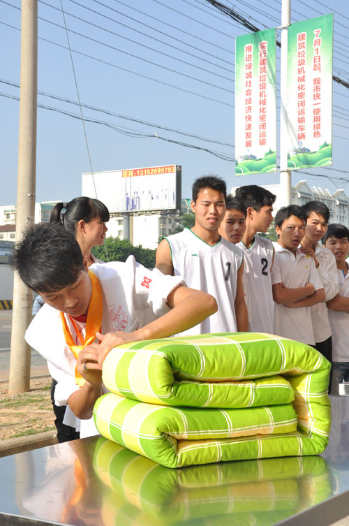 活动最后,学校后勤部长宇翔对此次活动进行了点评。他说,通过叠军被也是能够充分的体现出部队中的团队作风及精神状态。他希望同学们能从身边的小事做起,养成良好的学习和生活习惯。