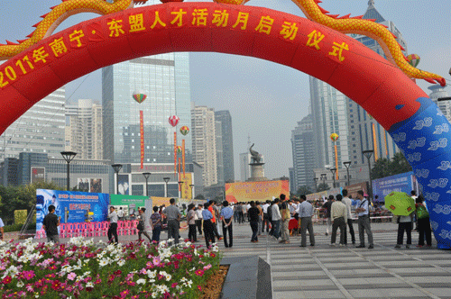 10月23日上午,南宁•东盟人才活动月启动仪式在金湖广场举行,活动月人才技能大赛也在本次的启动仪式上同时展开。来自泰国、柬埔寨等国领导、自治区、南宁市、和各部门等相关领导以及南宁市优秀人才代表等约600人出席启动仪式。