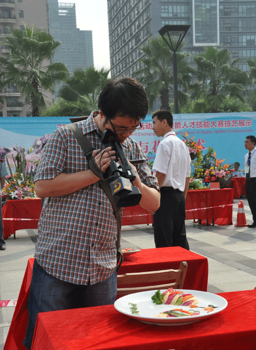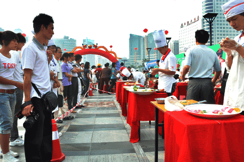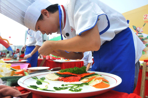 广西华南烹饪学校20多名学员们在朱伟老师的带领下,积极的参与到此次活动月的技能大赛当中。为了能在此次技能大赛中发挥出高超的水平,学员们要在平日里熟练基本工的基础下,还要再加上几个晚上专门的训练。技能大赛中,我校学员们优秀的表现以及打造出的精美作品,成为了当天展览中的一大亮点,吸引了大量媒体前来报道和游客的观赏。