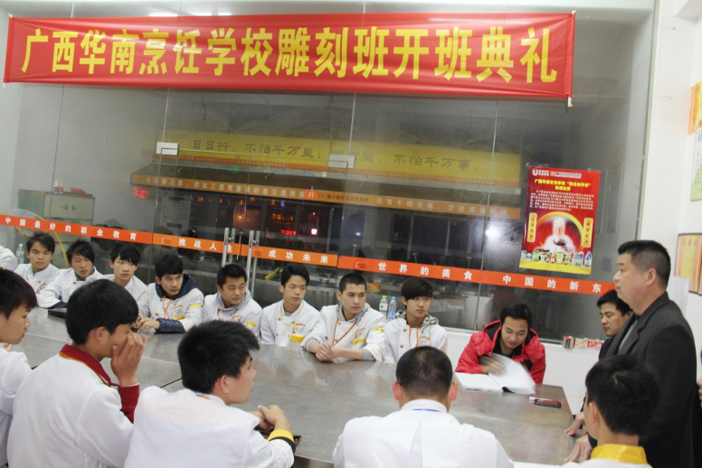 春天,万物复苏,世间一切物都充满了生机。在这春意盎然的季节了广西华南烹饪学校大学路校区雕刻班成功开班,雕刻班受到了学校领导的重视,得到了校区老师们的积极配合与支持,开班典礼还邀请到了校区创就业主任朱伟、中国烹饪大师黄盛、雕刻大师杨罗银、及雕拼组各科老师代表参加。