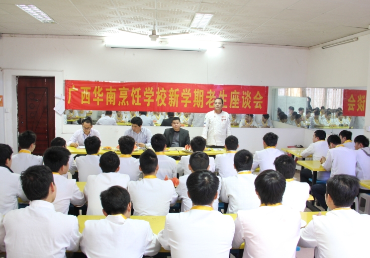 随后,教务主任黄盛大师以幽默风趣的语气给同学们讲解了在下一步同学们将会学的知识,并嘱咐同学们要认真学习,争取早日成为一名合格的厨师精英。