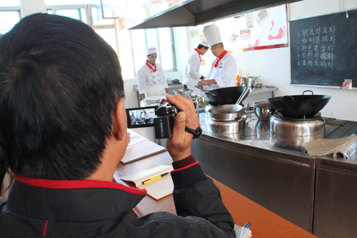 前来参加“技能互帮”活动的市民拿摄像机记录菜肴制作过程