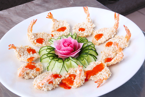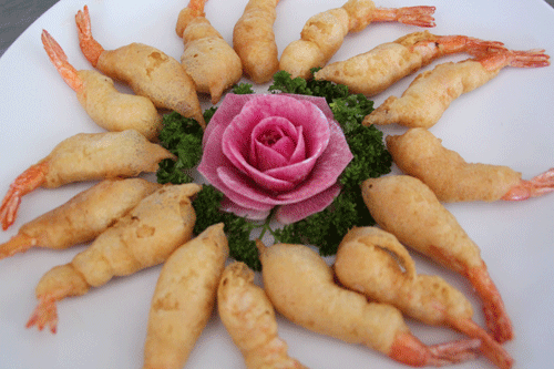 第一道菜“脆皮炸直虾”做好了,市民争相拍摄