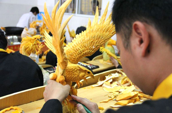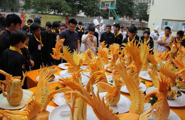 此次两年制大厨126、127班的雕刻阶段考核又是一次提升学生雕刻水平的机会,这个班级已经在广西华南烹饪学校学习了一年多的时间,雕刻技术和其它烹饪技术都相当熟练,但是他们还是没有放松学习的劲头,每一次的练习都是一个提升和成长的过程。在阶段考核的过程中,可以让老师及时发现学生雕刻出现的问题,及时让他们认识到自己的不足,这样才可以让他们有进一步的提升。