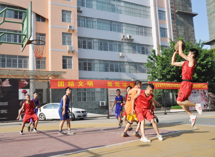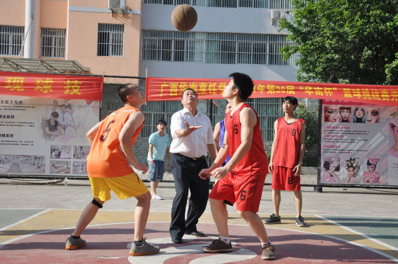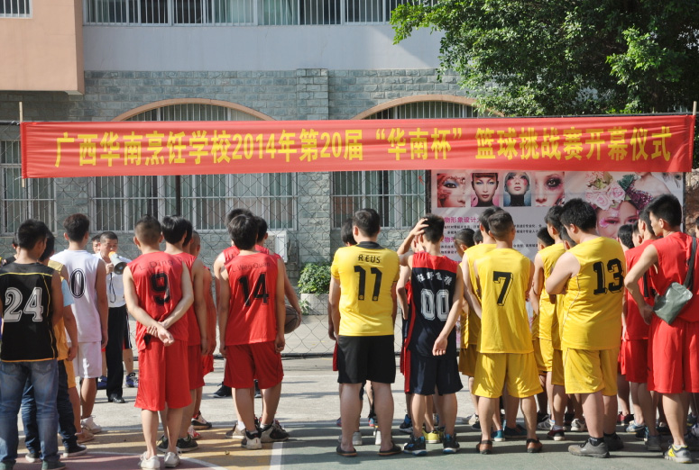 烈日算什么,狂风算什么,暴雨又算什么!在年轻的时代,我们拥有的是无限的青春,我们享受的是篮球的快乐,让我们一同“释放真我,尽享篮球”。5月15日,由校教务处、校学生会主办的广西华南烹饪学校2014年第二十届“华南杯”篮球挑战赛在校本部篮球场拉开了帷幕。来自大学路校区各专业的12支队伍参加了本次比赛。本次比赛将以日赛、周赛和决赛的形式在华南的球场上展开一系列角逐。