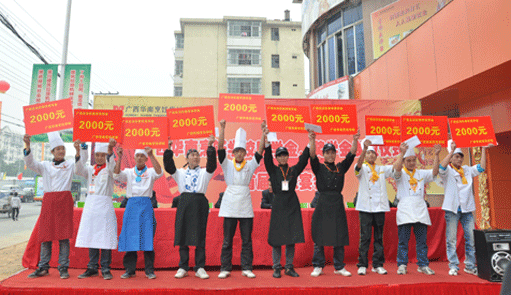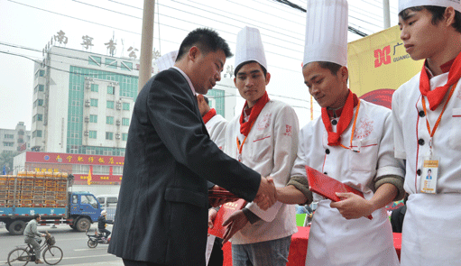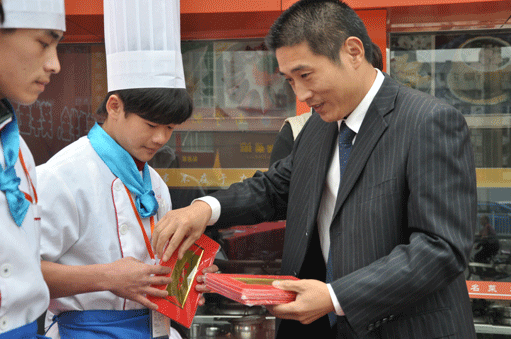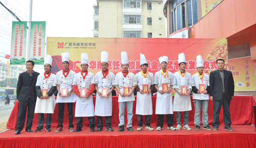 12月28日,广西华南烹饪学校首届“百家宴”暨奖学金、助学金发放仪式在大学路校区举行,校领导朱伟、魏兆权、宇翔、万家国等出席了此次活动,美容美发学校的王勇老师、海纳电脑学校的汪骐老师、考证中心胡加文老师做为嘉宾参与了此次颁奖仪式。此次颁奖仪式除了对奖学金、助学金的发放,同时还对优秀学生和在第十届西乡塘美食节上获奖的学生进行表彰。奖学金获得者共10人,每人2000元;助学金获得者为二年制全体学员,每人750元;优秀学生获得者40余人。