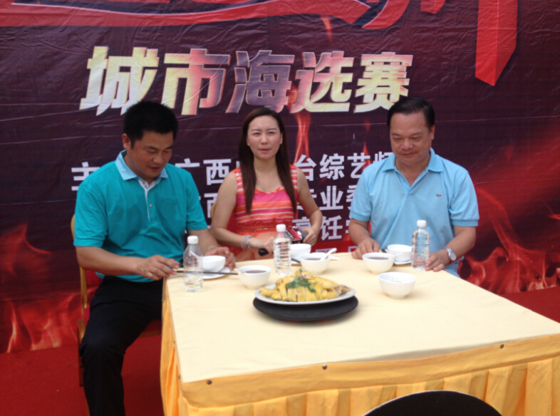 近日,由广西电视台综艺频道携手华南烹饪学校,广西名厨专业委员会联合举办的《全民厨神》第二季海选赛在广西玉林青年广场隆重举行。《全民厨神》作为甄选广西美食,寻找民间烹饪达人一档节目,受到了广大人民的热烈欢迎,玉林海选赛现场同样受到了人们的热烈欢迎。四位玉林民间美食烹饪高手争夺两席南宁复赛的资格。