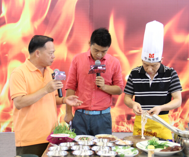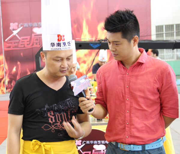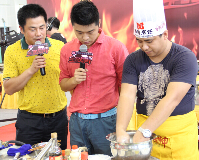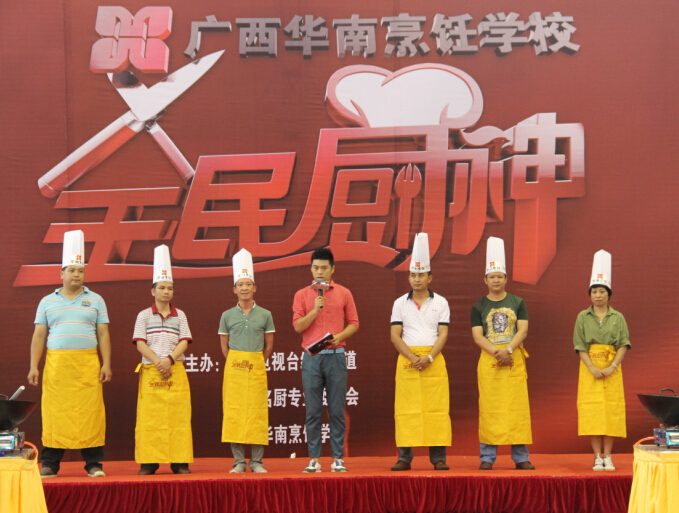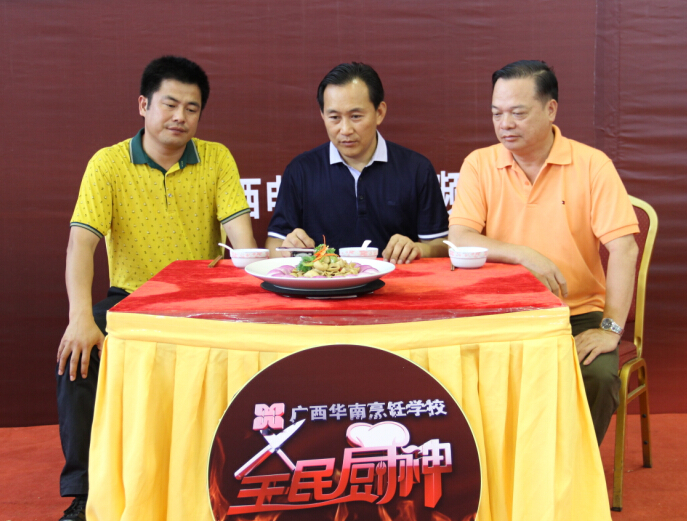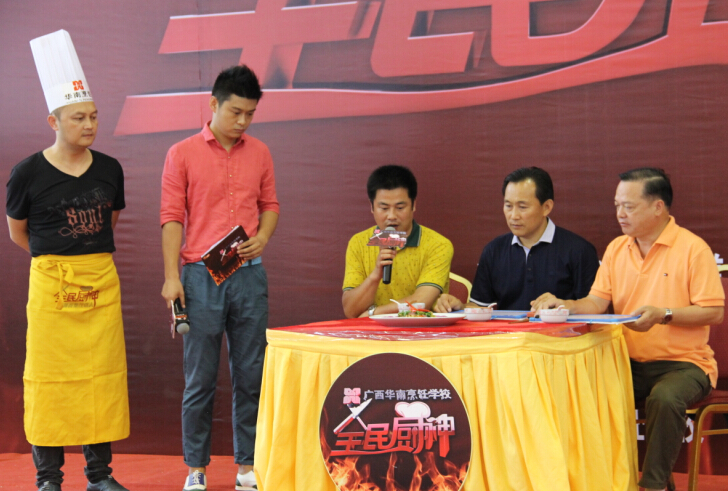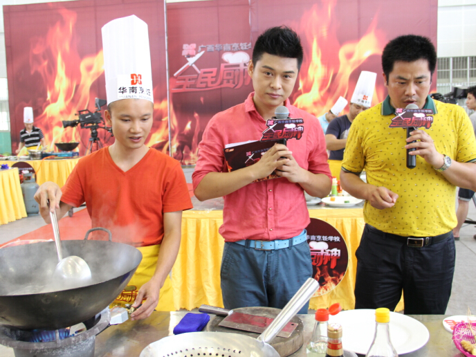 6月12日上午,广西综艺频道——《全民厨神》第二季10进6烹饪比赛在我校激情上演。担任此次比赛的评委依旧来自广西华南烹饪学校的专业负责人、就业指导中心主任、广西名厨专业委员会副主任朱伟;中国烹饪大师、国家级评委闭思惠;中国烹饪大师、国家级评委王卫东。