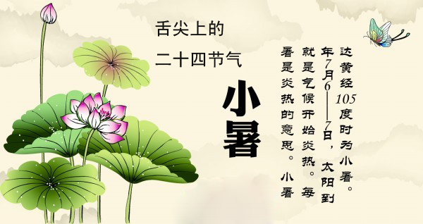 “小荷才露尖尖角”是小暑节气的物候。小暑则是炎热的开始。一度匿迹的花朵,此时似乎找回了“二度春风”。虽然没有春花之灿烂,但夏花自有夏花的芳容。满架蔷薇,一支牵牛;再加上茉莉飘香、栀子沁人;小暑的心情并没有因为气温的增高而显示出烦躁,却有着一种从容与闲适。