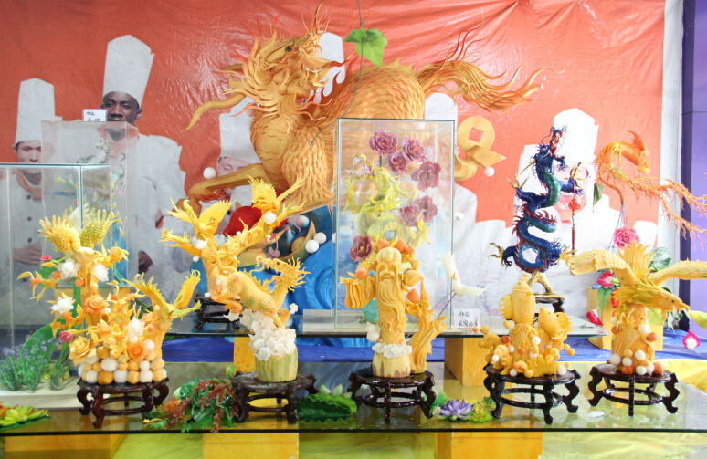据悉,这些雕刻作品都出自广西华南烹饪学校雕刻班学生之手。学生在老师的指导下先从最简单的雕刻开始,逐渐加大难度,逐步练习才有了今天的水平,今后,他们还将学习大型整雕、泡沫雕,难度和美观度比现在更大。