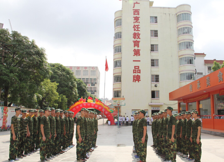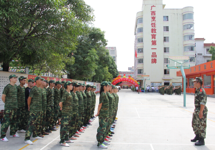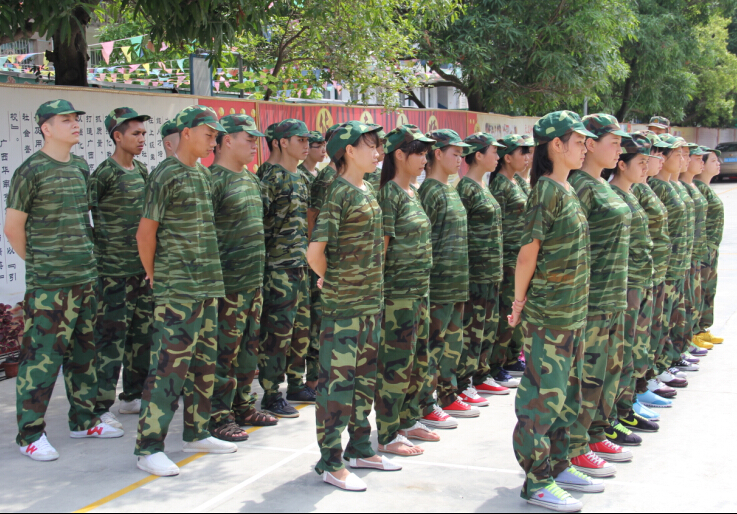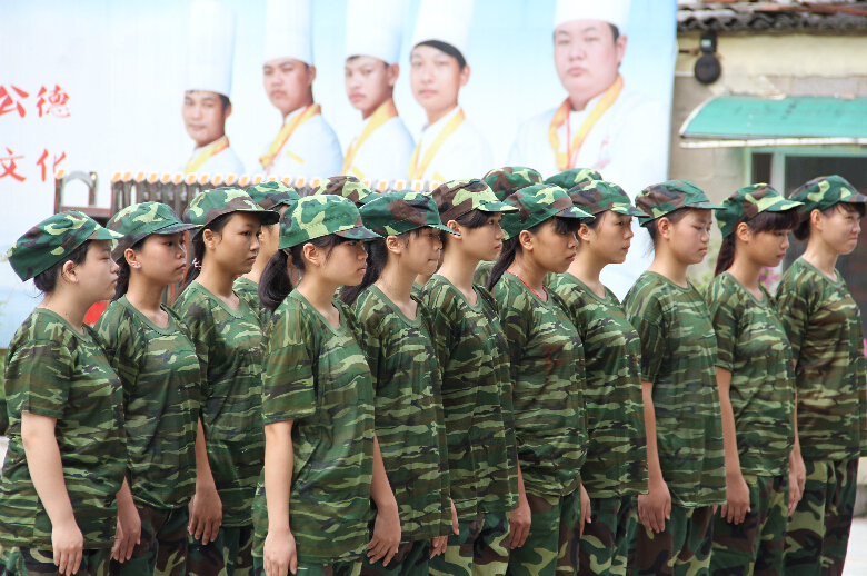 近日,我校又迎来了一批新学员。新学员来到广西华南烹饪学校学习知识技能,首先要接受的军训的洗礼!2014级新生军训方队身着迷彩服,以饱满的热情、飒爽的英姿、严整的阵容、整齐的队列充分展示了新生朝气蓬勃、昂扬向上的精神风貌,嘹亮的歌喉更是在酷热的夏季里,充满了无限的生机与活力,响彻整个校园。