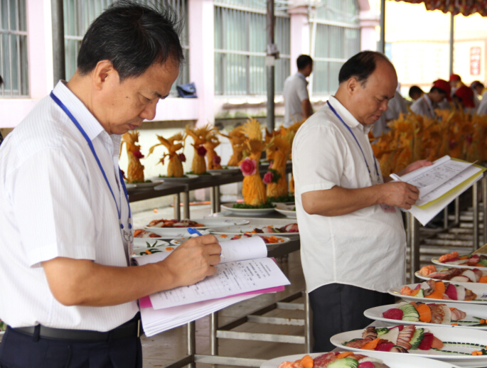 本次考核的评委有:西园饭店行政总厨国家高级评委宾志泉、广西区鉴定中心李德枝、西园鉴定所刘桂林所长。
