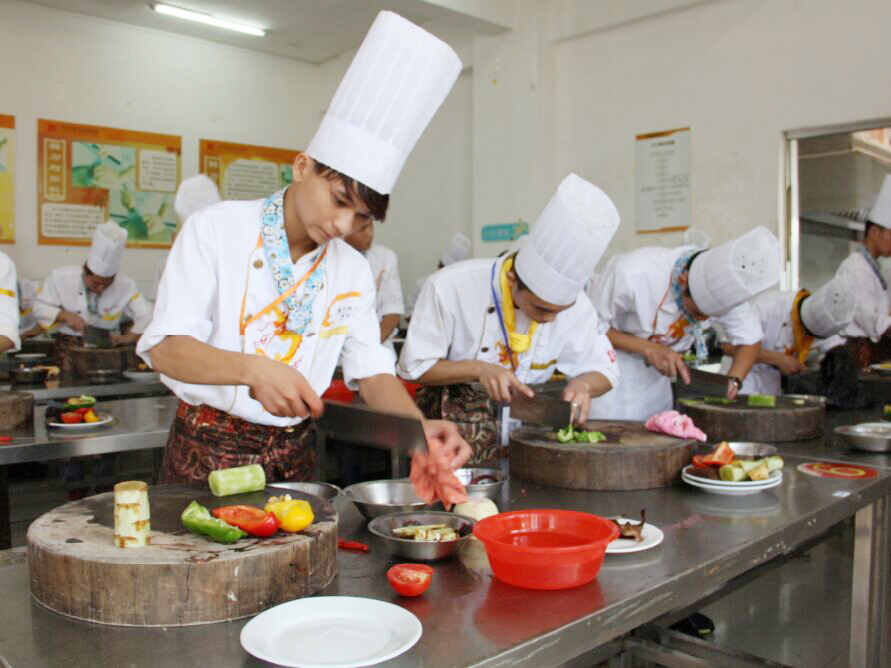 据广西华南烹饪学校创就业指导中心朱主任介绍,一年制及两年制以上的学生毕业后,主要向餐饮业发展,大部分同学都在酒店、饭店和连锁店任职,积累工作经验,将在学校学习到的理论知识融汇到工作中。不少同学在从事了几年的厨师工作后,有的升为经理和厨师长,有的自己创业当老板等。事实上,他们毕业时都会有很多家酒店可供他们选择,不少毕业生选择酒店时都会考虑酒店的星级情况、发展前景、所在城市、薪资待遇、岗位发展空间等等,以找到他们最满意的酒店再做最终的选择。